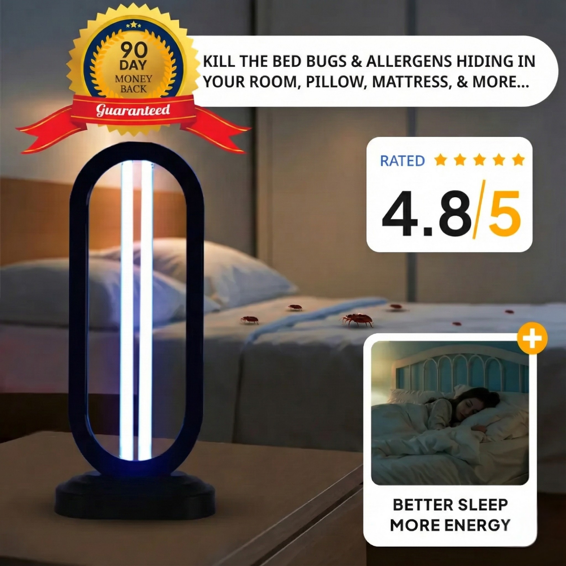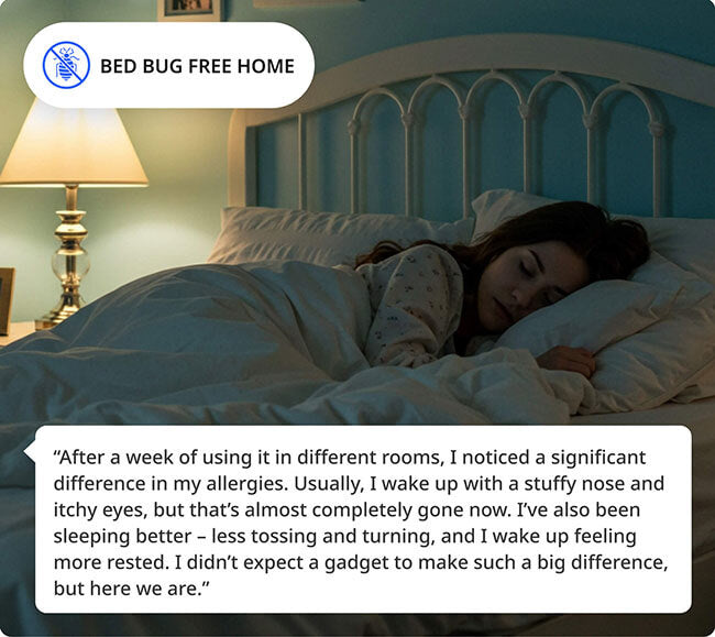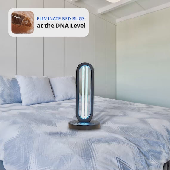 - HaloUV eliminates bed bugs, dust mites, eggs, and odors using natural UV light and ozone, with no harsh chemicals.